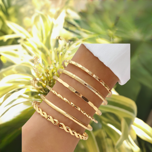 Bohemian Metal Chain Bracelet Set For Women Geometric Gold Color Thick Link Chain Open Bangle Female Fashion Jewelry